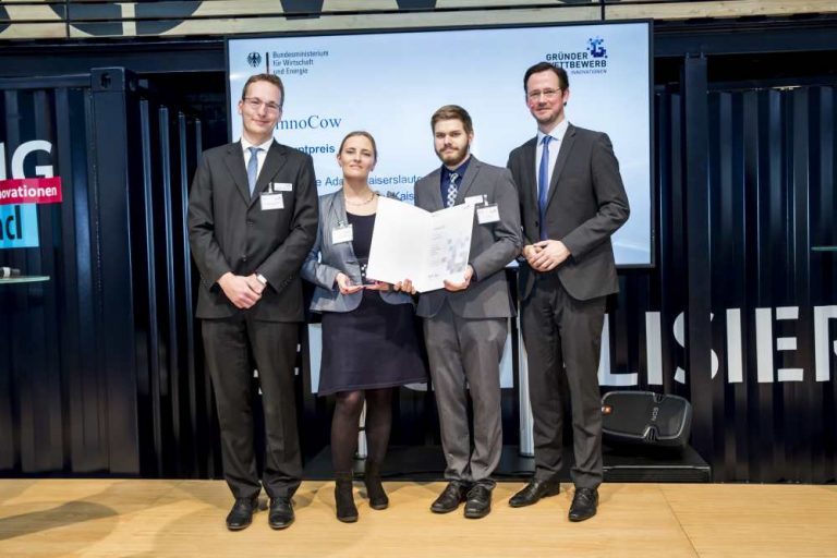 Am Ende hat die Jury unsere Geschäftsidee ausgewählt und mit einem Hauptpreis prämiert. Damit gehörten wir zu den ersten Preisträgern des Gründerwettbewerbs Digitale Innovationen. Der Wettbewerb wurde vom BMWi neu aufgelegt und startete mit der Runde 2016, welche wir gleich für uns entscheiden konnten. Zusätzlich zu dem Preisgeld als Startkapital für die eigene Unternehmensgründung erhalten alle Preisträger ein umfangreiches Coaching und Mentoring. Neben unserem Sensorhalsband für Milchkühe wurden weitere spannende Ideen ausgezeichnet. Angefangen mit der automatischen Messung der Rest-Lebensdauer von Komponenten in Fahrzeugen bis hin zur genauen Bestimmung der Linsenposition war alles vertreten. Die Digitalisierung macht also vor nichts halt, auch nicht vor Milchkühen.